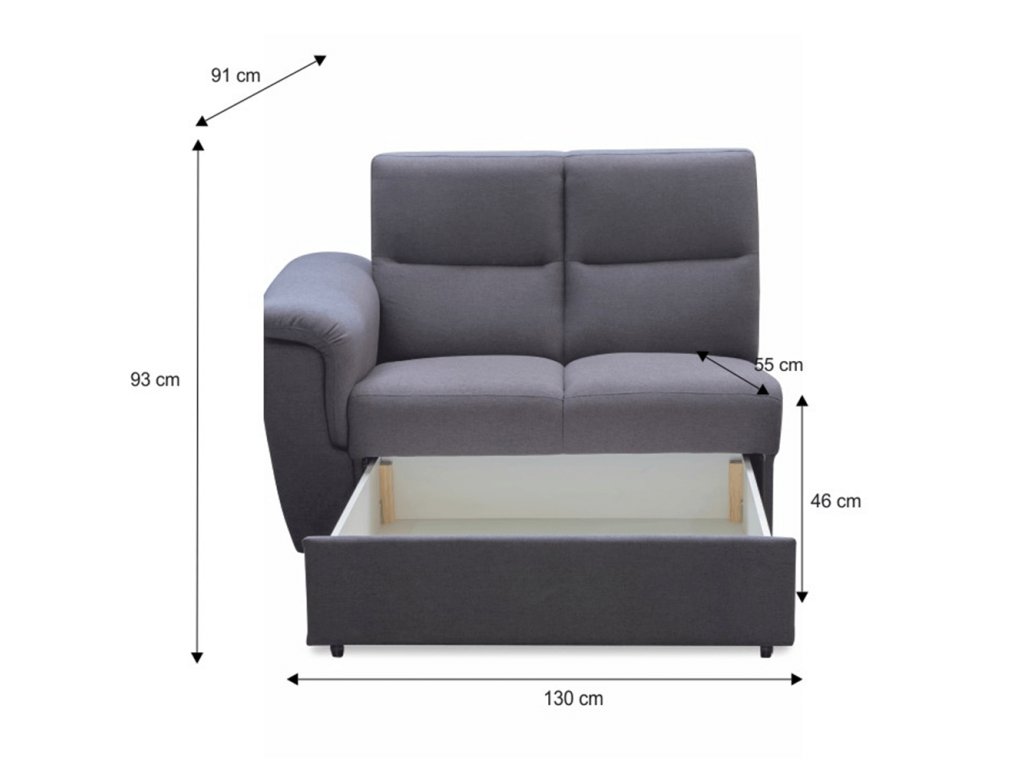 Část s opěrkou a úložným prostorem, šedá látka, na objednávku, levá, BORN 2 1B ZS