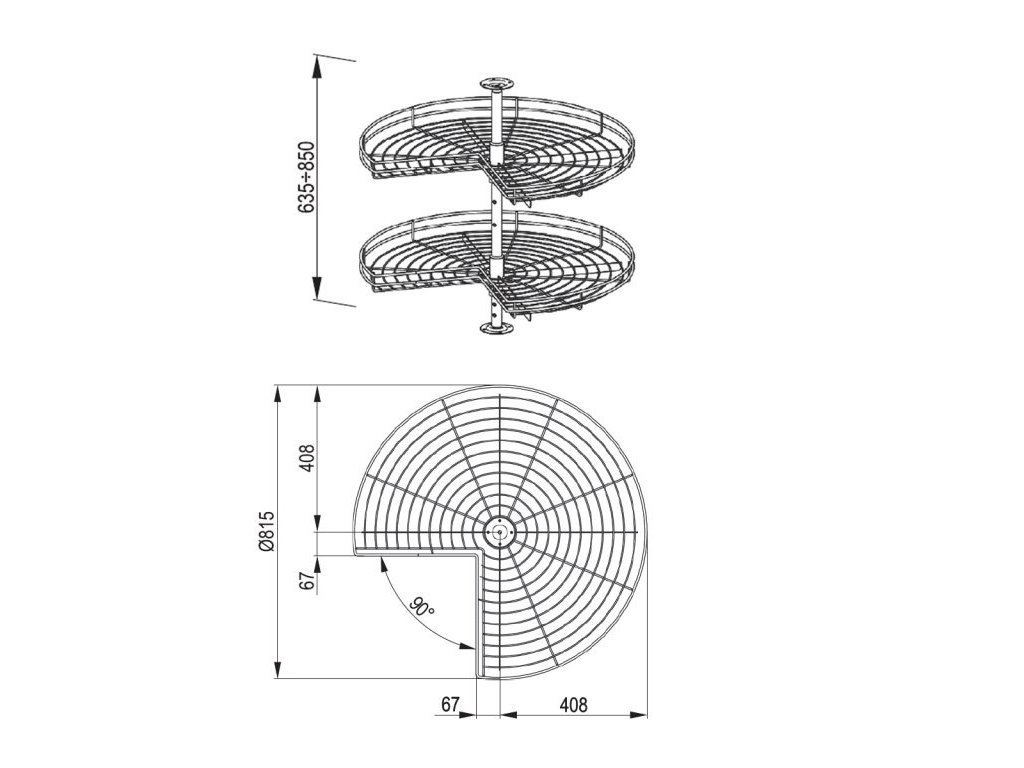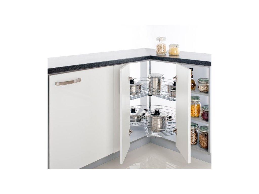 Koš CARGO - otočný drátěný systém NOVA je určen pro rohovou skříňku D12/90. Díky doplňkům do kuchyňských skříněk skvěle uložíte vše potřebné a nemusíte mít ani sklep. Otočný systém do rohových skříněk nabízí více úložního prostoru a přehlednost mezi jednotlivými uloženými věcmi. Systém KARGO nabízí mnoho uložního prostoru v 2 koších, které mají regulovatelnou výšku košů a brzdu.