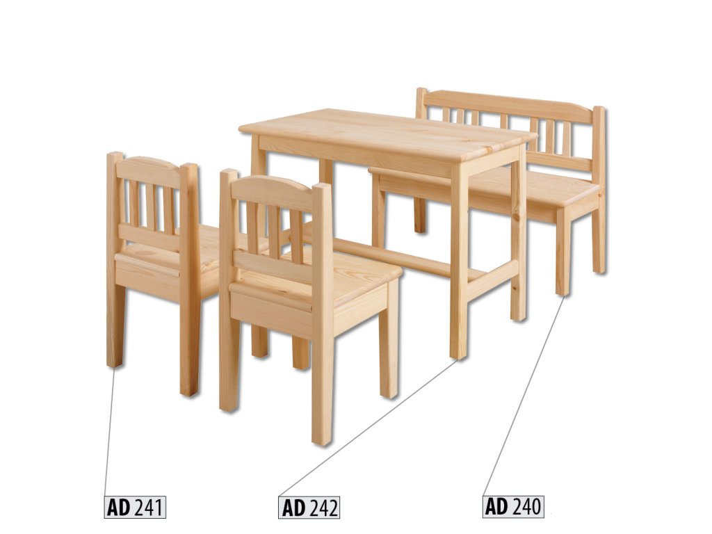 Dětská lavice z masivního borovicového dřeva. V kombinaci se stolem (AD242) a přídavnými židličkami z této řady (AD241) vytvoří perfektní sadu pro batole. Potěší rodiče, kteří mají rádi klasický a přírodní styl.Doplňkové parametry