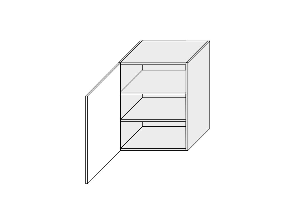 Horní skříňka W2/50 ze sestavy PLATINIUM má 1 dvířka a za nimi 2 police.