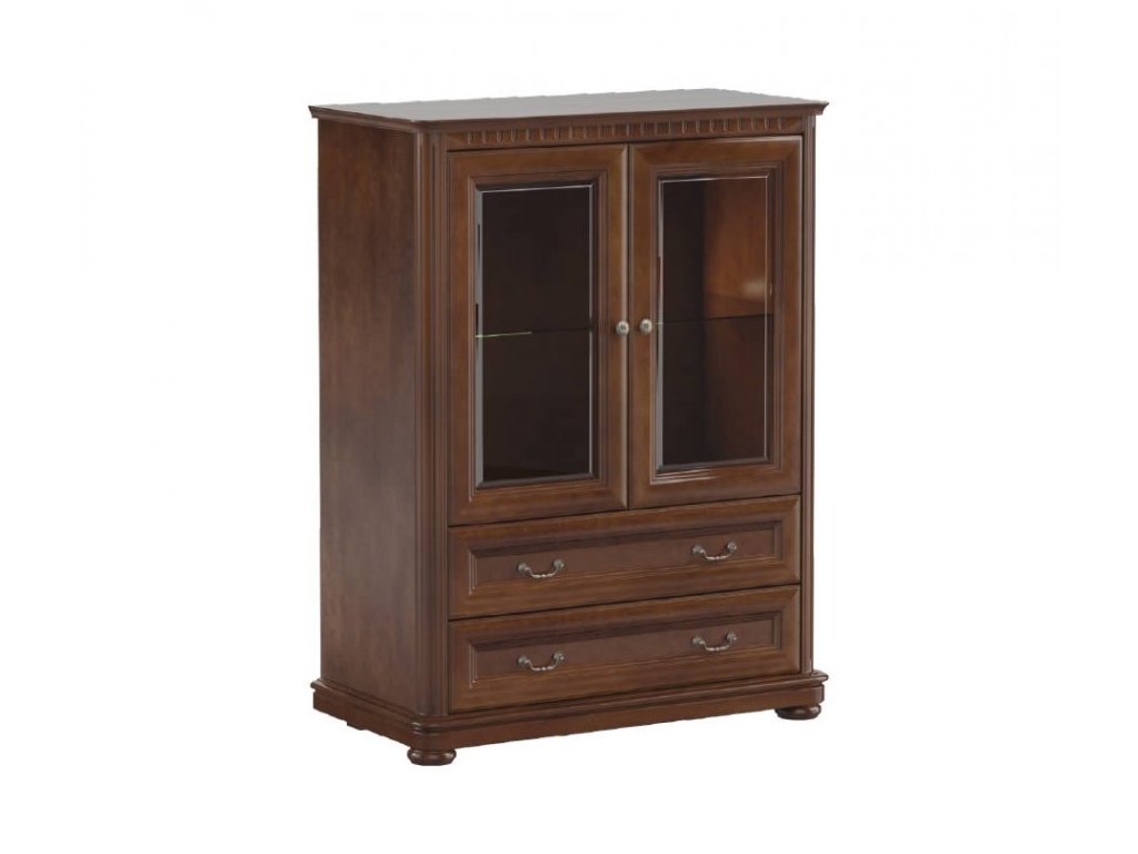 Materiál: přírodní mořená lakovaná dýhovaná deska a masivní tvrdé dřevo, tiché dovíraní, sklo