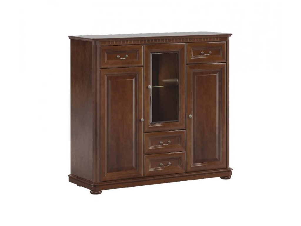 Komoda ze sestavy LORENZ má 3 dvířka a 4 zásuvky.