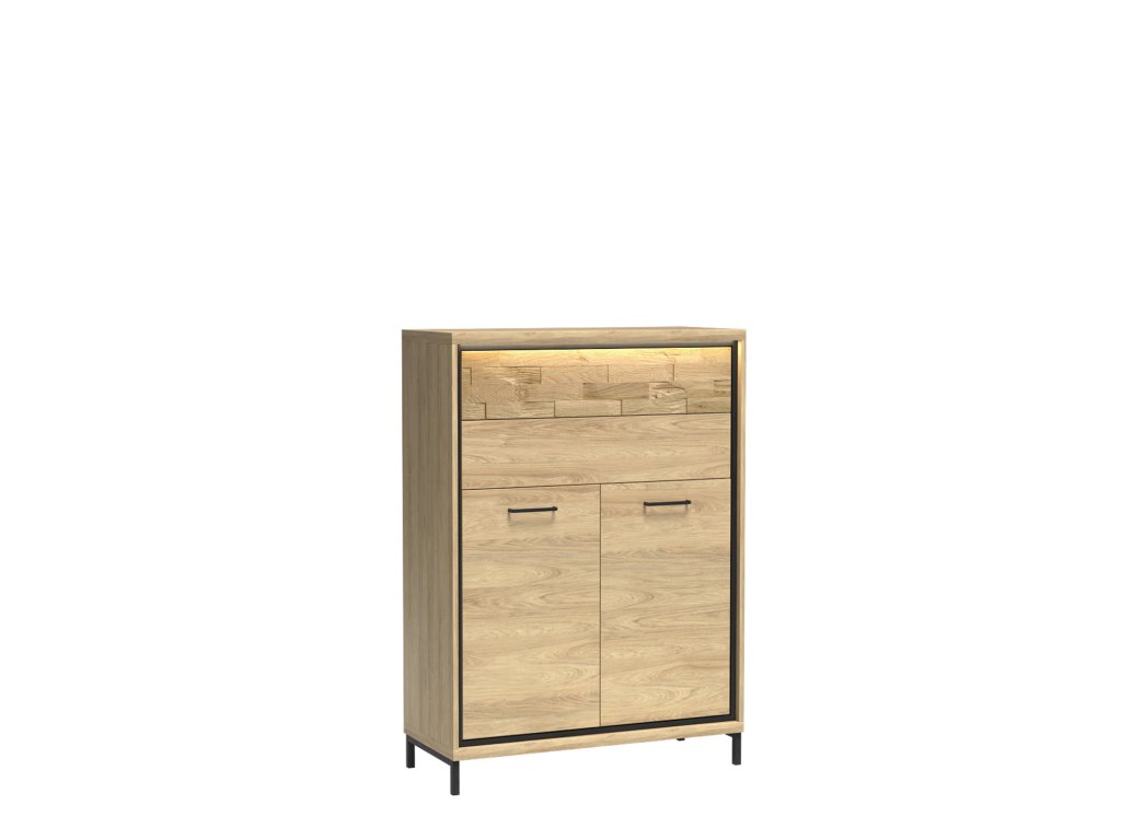 Komoda MEDIOLAN má 2 dvířka a 2 zásuvky. Zásuvky se otevírají mechanismem PUSH TO OPEN.