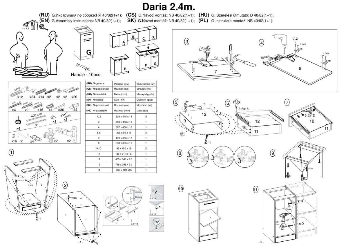 Šířky dolních skříněk: 1x 40cm, 1x 80cm- dřezová, 1x60cm