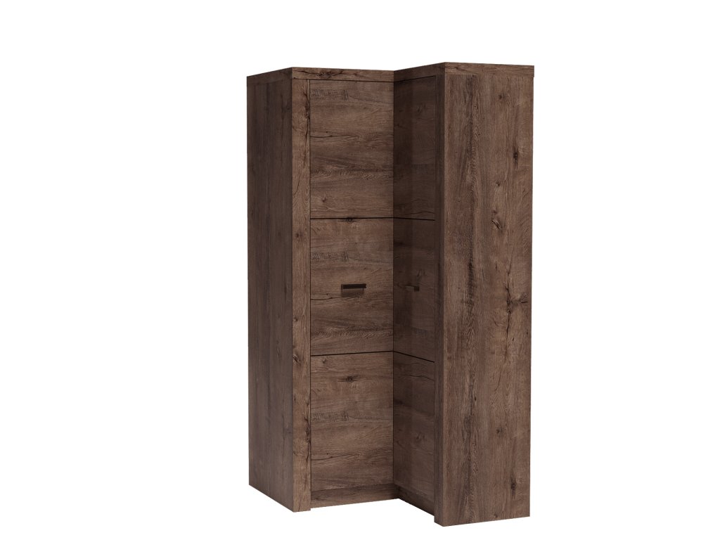 Rohová šatní skříň I-14 ze sestavy INDIANAPOLIS má v jedné části police a v druhé šatní tyč. Skříň lze doplnit o police - v případě zájmu napište do poznámky v objednávce