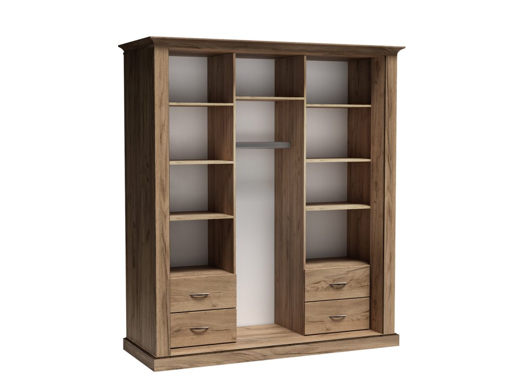 Šatní skříň 183 ze sestavy ANTICA má šatní tyč , 4 šuplíky a 8 polic.