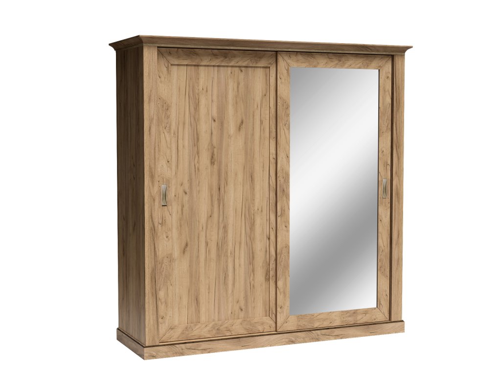 Prostranná šatní skříň 211 ze sestavy ANTICA má šatní tyč , 4 šuplíky a 8 polic.